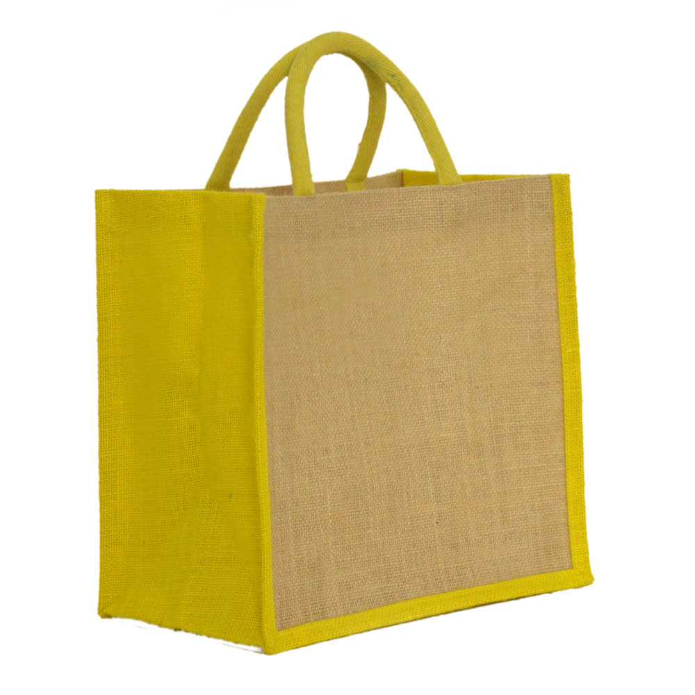 - Bag Description: Natural Jute Bag with Dyed Gusset & Handles